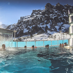 Leukerbad Therme is the largest thermal bath complex in the entire Alpine region, with ten different pools – from a 36° warm vitality pool to a sports pool or hot-and-cold pool, water slides, a modern sauna area and a wide range of wellness and natural remedies.
