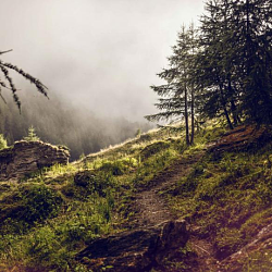 A high-altitude trail in a class of its own. Along the sunny side of the young Rhone Valley, you'll discover Goms on well-maintained forest and meadow paths