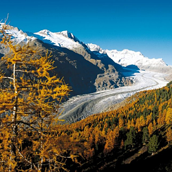 It's an impressive spectacle: the snow-white Aletsch Glacier suddenly gleams amidst the colourful stone pines. The "Aletschwald" Pro Natura protected area, which stretches along the white giant, is one of Switzerland's most beautiful mountain forests.
